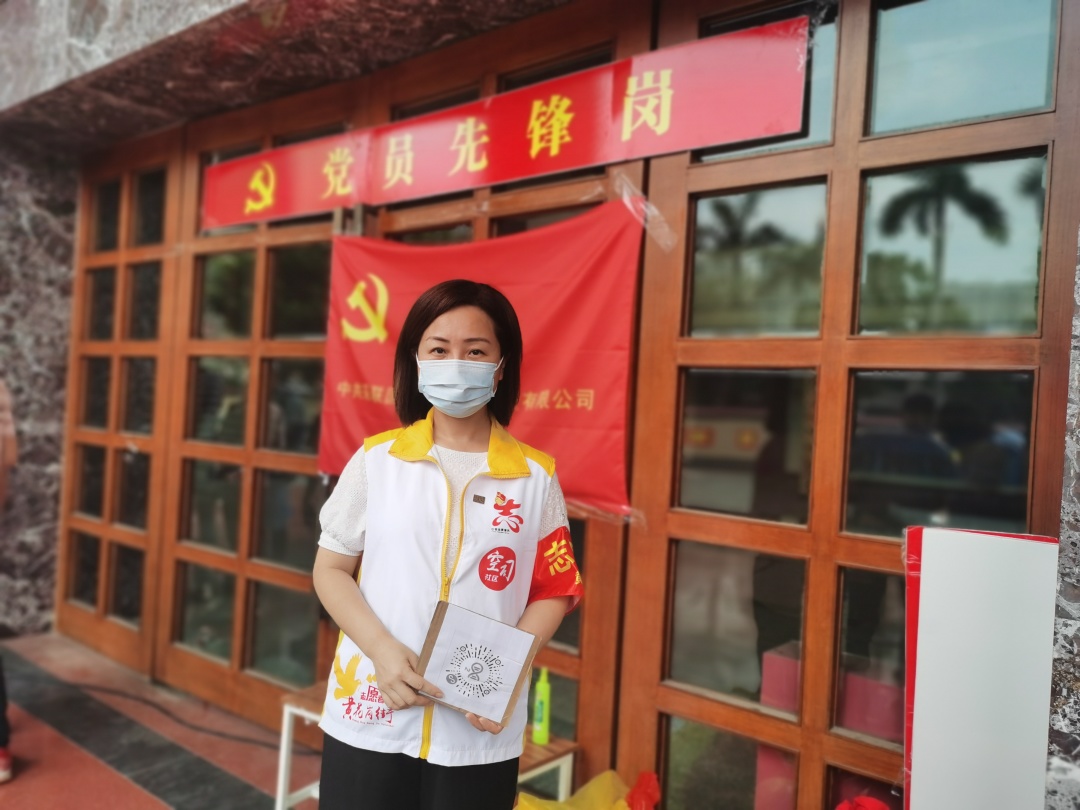 时间就是命令,一名党员就是一面旗帜。采联集团党支部书记黄莉莉带头做表率,冲锋在前,顶着烈日在核酸检测现场指导社区居民扫描二维码,填报资料。