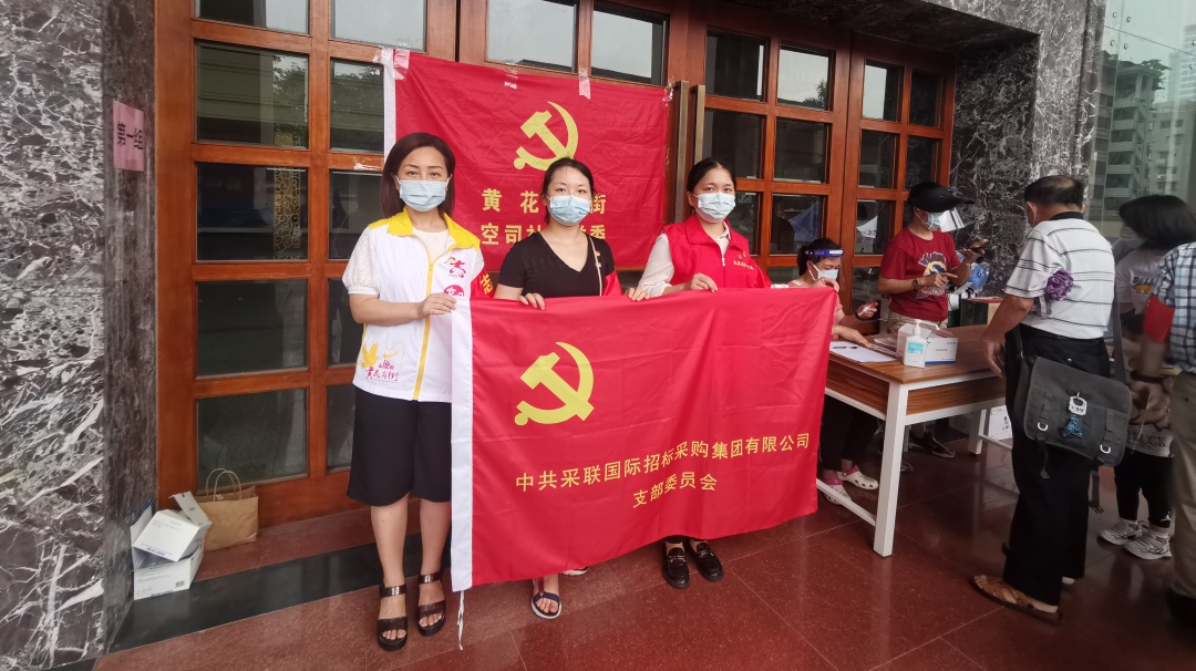 2021年6月25日,黄花岗社区党委组织开展第四次大规模人员核酸检测,由于时间紧迫,需要大量的社区党员志愿者前往协助。采联集团党支部收到通知后,第一时间赶往现场支持工作。